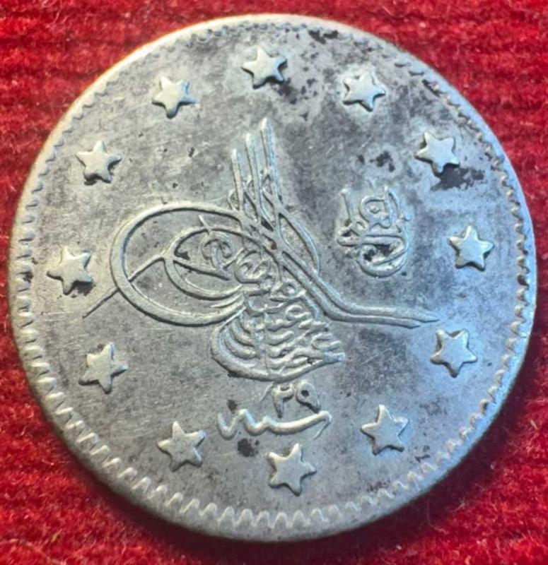OSMANLI II.ABDÜLHAMİD 1876-1909( AH 1293-1327) 1 KURUŞ GÜMÜŞ ORJİNAL ÜRÜN NO: 040 METERYAL:GÜMÜŞ CÜLUS: 1293/29 KONDİSYON: ÇİL