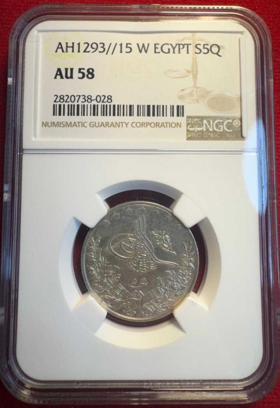 OSMANLI II.ABDÜLHAMİD 1876-1909 ( AH 1293-1327) 5 KURUŞ GÜMÜŞ 1293/15 AU 58 MISIR ÜRÜN NO: S2 METERYAL:GÜMÜŞ CÜLUS: 1293/15 KONDİSYON: ÇA NGC SERTİFİKALI :AU 58