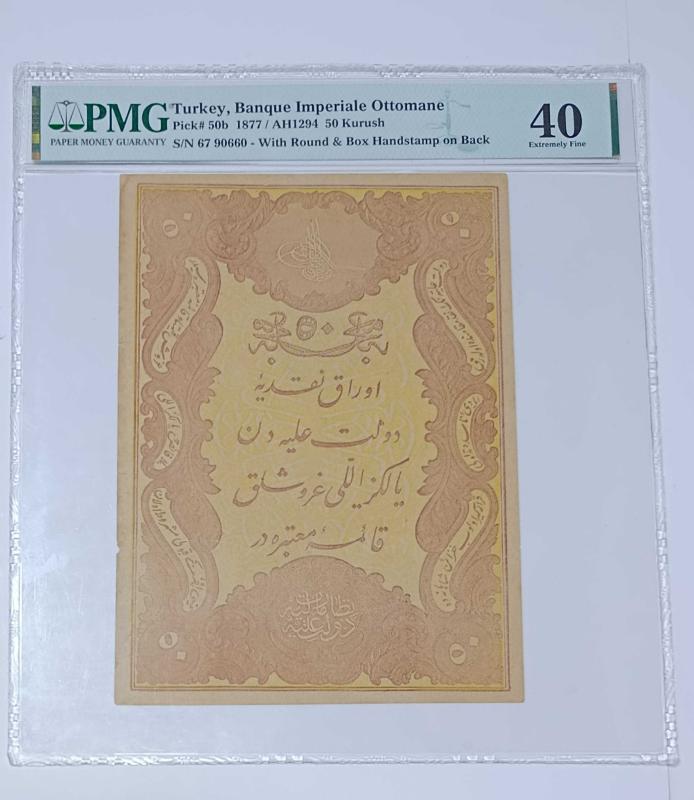 OSMANLI İMPARATORLUĞU PADİŞAH SULTAN 2.ABDÜLHAMİD 1294 HİCRİ/1877 MİLÂDİ TARİHLİ 50 KURUŞ PMG SERTİFİKALI başlıklı ürün, Efemera, Müzik, Sinema > Nümismatik, Para, Madalya > Kağıt Paralar > Osmanlı Dönemi > II. Abdülhamid kategorisi altında İkinci El olarak satılmaktadır.