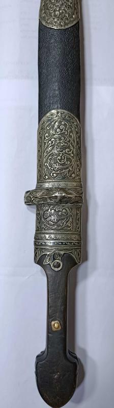 OSMANLI İMPARATORLUĞU PADİŞAH SULTAN 2. ABDÜLHAMİD DÖNEMİ HİCRİ 1315 TARİHLİ OSMANLICA YAZILI , KIN VE KABZA GÜMÜŞ ÜZERİ SAVAT İŞLEMELİ ORJİNAL SARAY ÜSLUBU KAMA 50 CM BOYUNDA başlıklı antika/koleksiyon objesi Osmanlı menşe’lidir. 1880-1899 arası dönemine aittir.
