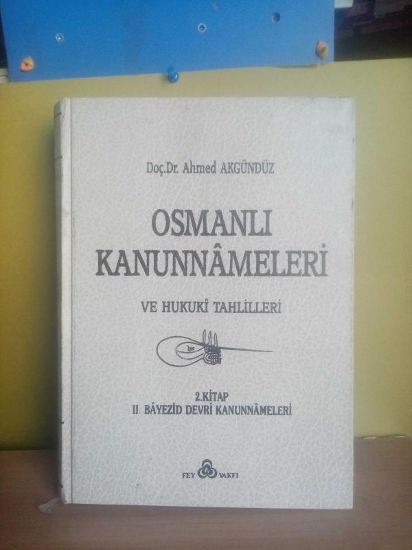 OSMANLI KANUNNAMELERİ VE HUKUKİ TAHLİLLERİ 2.KİTAP II.BAYEZİD DEVRİ KANUNNAMELERİ 2.EL, AHMED AKGÜNDÜZ tarafından kaleme alınmıştır. Kitap 1990 yılında FEY VAKFI tarafından [İSTANBUL] yayınlanmıştır. 655 sayfadır. OSMANLI KANUNNAMELERİ VE HUKUKİ TAHLİLLERİ 2.KİTAP II.BAYEZİD DEVRİ KANUNNAMELERİ 2.EL adlı eser Türkçe dilindedir. Eserin içeriğinde Osmanlıca dilinde bölümlere de yer verilmektedir.