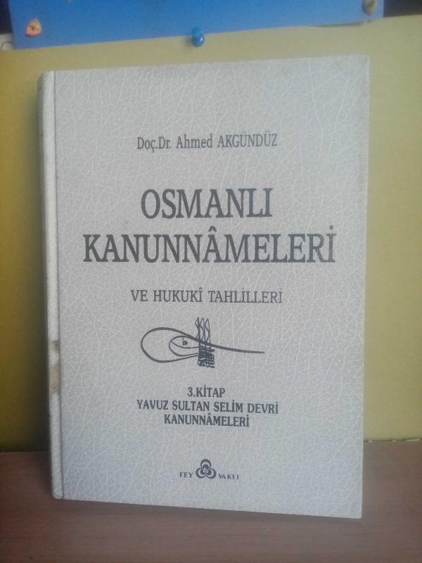 OSMANLI KANUNNAMELERİ VE HUKUKİ TAHLİLLERİ 3.KİTAP YAVUZ SULTAN SELİM DEVRİ KANUNNAMELERİ 2.EL, AHMED AKGÜNDÜZ tarafından kaleme alınmıştır. Kitap 1991 yılında FEY VAKFI tarafından [İSTANBUL] yayınlanmıştır. 566 sayfadır. OSMANLI KANUNNAMELERİ VE HUKUKİ TAHLİLLERİ 3.KİTAP YAVUZ SULTAN SELİM DEVRİ KANUNNAMELERİ 2.EL adlı eser Türkçe dilindedir. Eserin içeriğinde Osmanlıca dilinde bölümlere de yer verilmektedir.