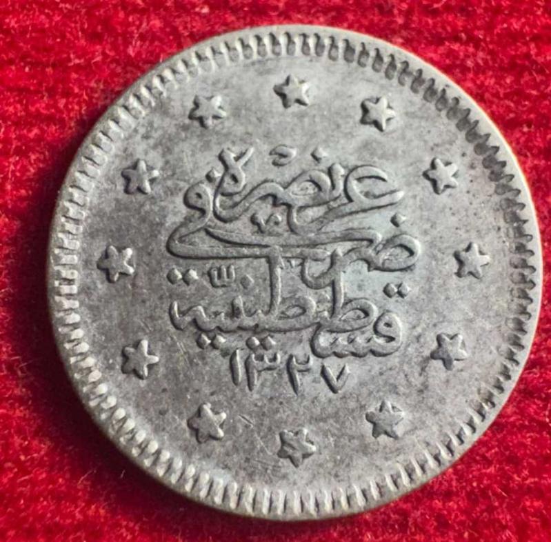 OSMANLI MEHMED REŞAD 1909-1918 ( AH 1327-1336) 5 KURUŞ GÜMÜŞ ORJİNAL ÜRÜN NO: 001 METERYAL:GÜMÜŞ CÜLUS: 1327/2 KONDİSYON: ÇİL ALTI
