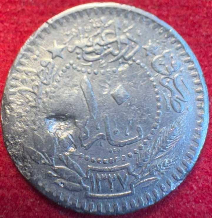 OSMANLI MEHMED REŞAD 1909-1918 ( AH 1327-1336) 10 PARA NİKEL 1327/7 ÜRÜN NO: 095 METERYAL:NİKEL CÜLUS: 1327/7 KONDİSYON: ÇÇT ELGAZİ BASKI ADEDİ BİLİNMİYOR.