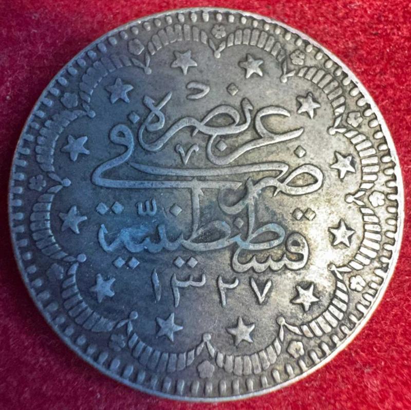 OSMANLI MEHMED REŞAD 1909-1918 ( AH 1327-1336) 5 KURUŞ GÜMÜŞ ORJİNAL ÜRÜN NO: 208 METERYAL:GÜMÜŞ CÜLUS: 1327/7 KONDİSYON: ÇİL