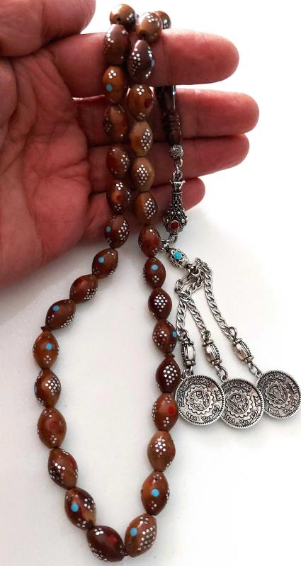 OSMANLI SON DÖNEM ARPA KESİM GÜMÜŞ KAKMALI BRONZ-PİRİNÇ PÜSKÜLLÜ MUHTEŞEM KUKA TESPİHTİR. TESPİHİN İMAME DAHİL UZUNLUĞU;27CM DİR. PÜSKÜL UZUNLUĞU;13,5CM DİR. DANE ÇAPI;1,2CMX0.8MM DİR. UYGUN FİYATLA SATIŞA SUNULMUŞTUR. DİĞER TIRI VIRI ÜRÜNLERLE KARIŞTIRMAYINIZ. RESMİNİ GÖRDÜĞÜNÜZ ÜRÜN AYNEN GÖNDERİLİR. TÜM ÜRÜNLERİMİZE BAKMANIZ MENFAATİNİZEDİR. SAYGILARIMIZLA.