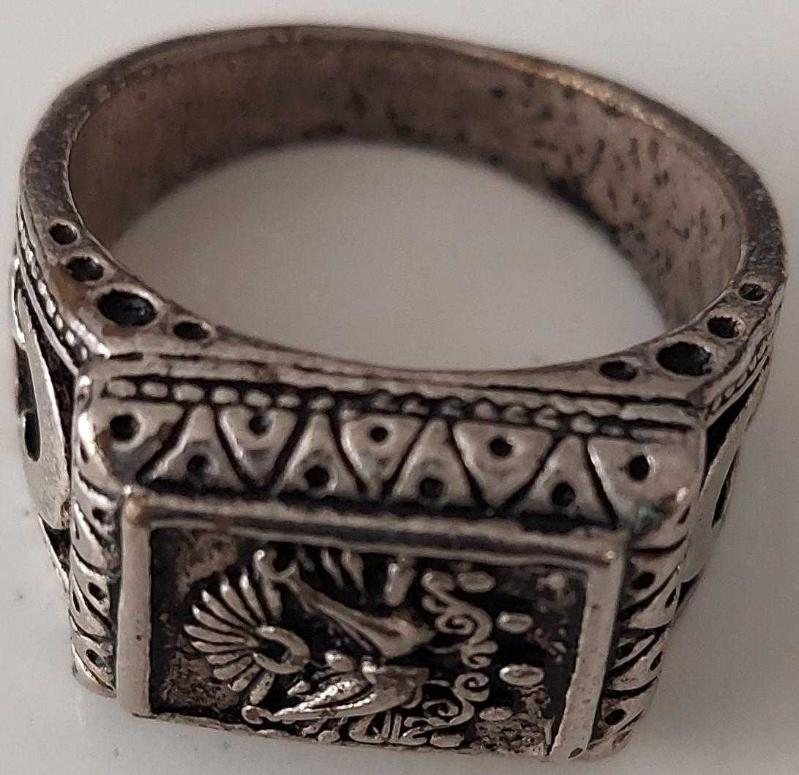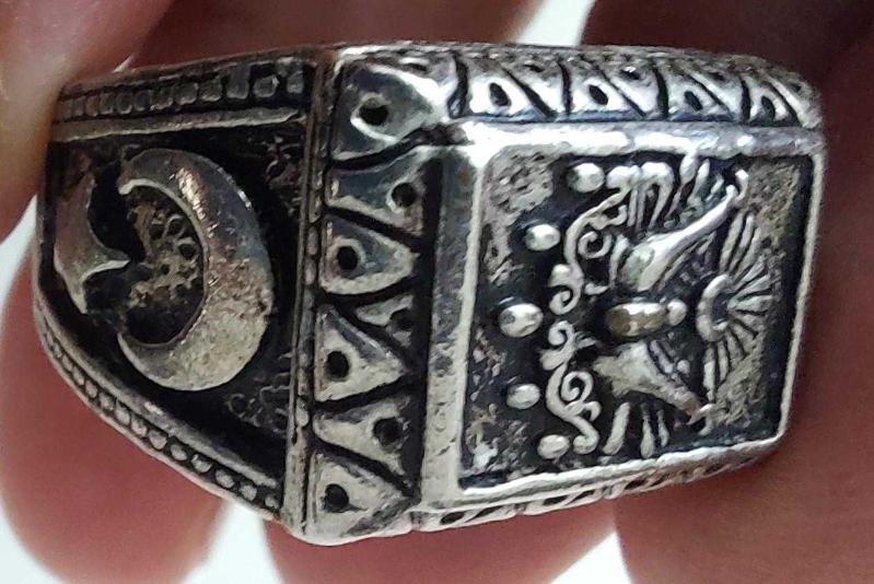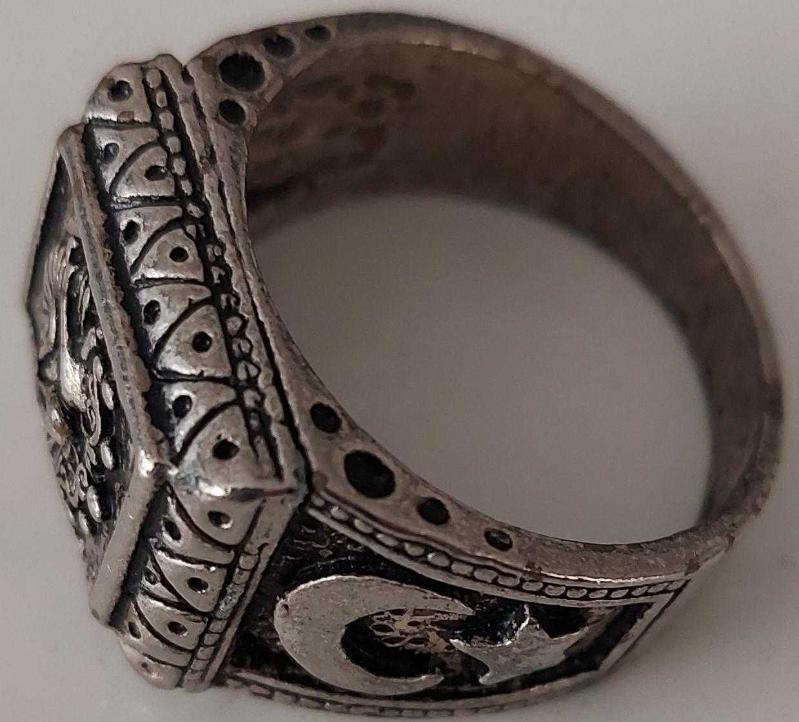 OSMANLI SON DÖNEMİ AYYILDIZLI VE TUĞRALI GÜMÜŞ-BRONZ-KALAY ALAŞIMLI MUHTEŞEM SANATSAL YÜZÜK AA1RRR1A ÇOK NADİR başlıklı antika/koleksiyon objesinin menşei belirtilmemiştir. 1920-1940 arası dönemine aittir.