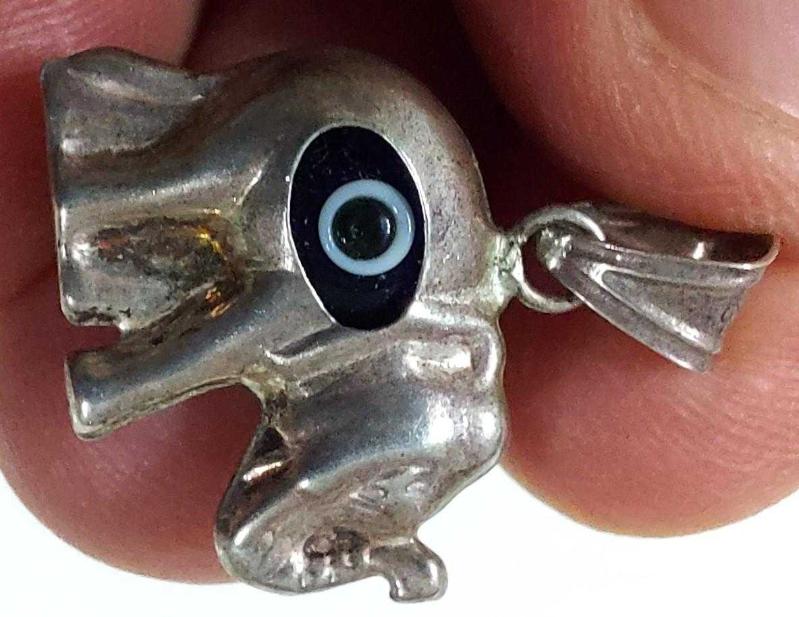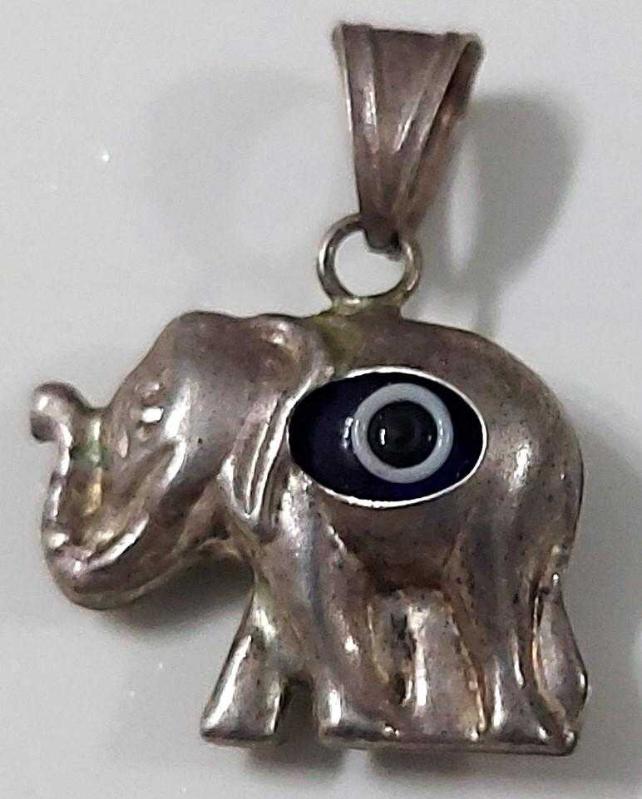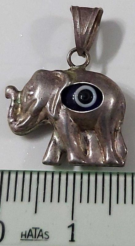 OSMANLI SON DÖNEMİ ORİJİNAL MÜTHİŞ İŞÇİLİKLİ FİL FİGÜRLÜ NAZARLIKLI GÜMÜŞ KOLYE UCU 2F1İL1 başlıklı antika/koleksiyon objesinin menşei belirtilmemiştir. Objenin ait olduğu dönem bilinmeketedir.