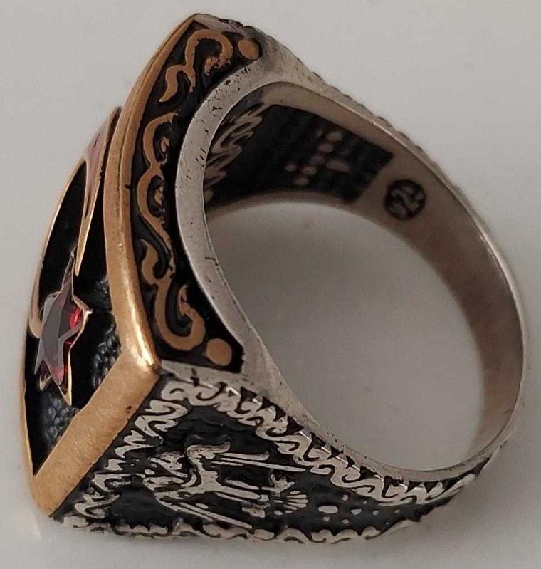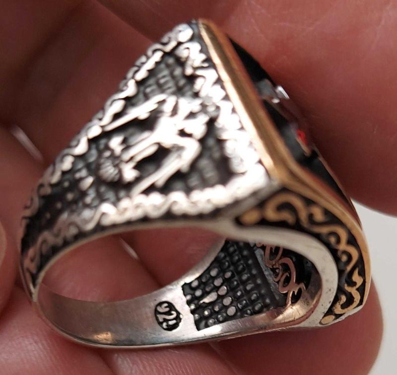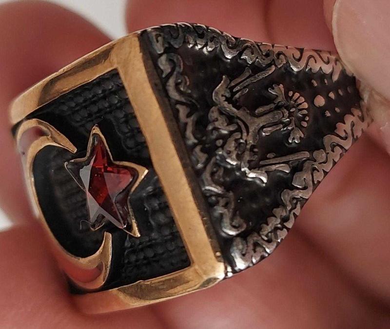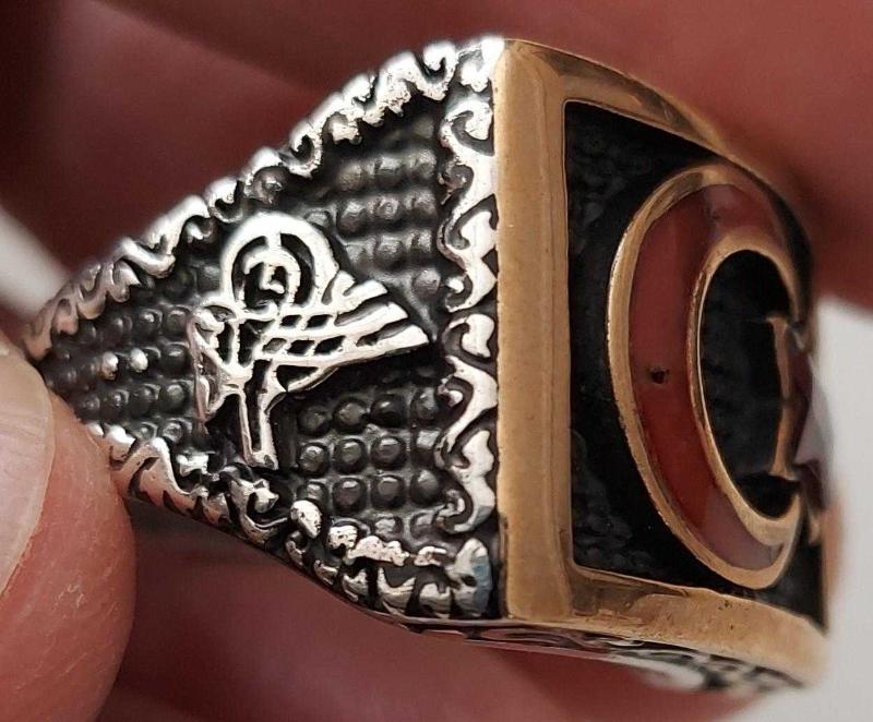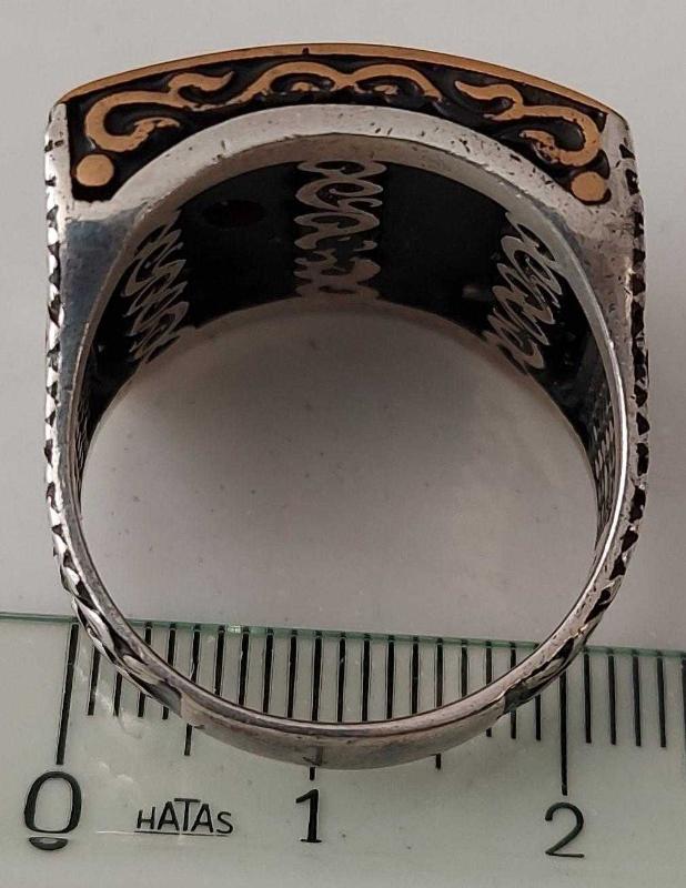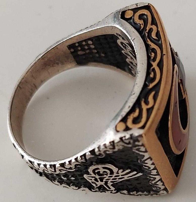 OSMANLI SON DÖNEMİ SARI AKSAMLAR ALTIN KAPLAMA MÜTHİŞ MOTİFLİ ORİJİNAL OSMANLI TUĞRALI AYYILDIZ FİGÜRLÜ MUHTEŞEM GÜMÜŞ YÜZÜKTÜR. EL YAPIMI OLUP USTALIK MUHTEŞEMDİR. DİĞER TIRI VIRI ÜRÜNLERLE KARIŞTIRMAYINIZ. ÇAPI;2 CM DİR. AĞIRLIĞI;15,2 GRAMDIR. UYGUN FİYATLA SATIŞA SUNULMUŞTUR. TÜM ÜRÜNLERİMİZE BAKMANIZ MENFAATİNİZEDİR. SELAM VE SAYGILARIMIZLA.