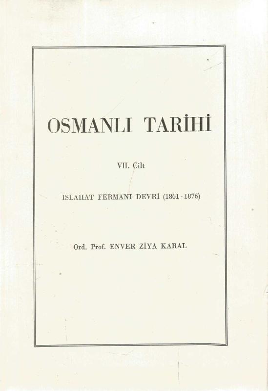 OSMANLI TARİHİ 7. CİLT ISLAHAT FERMANI DEVRİ 1861- 1876 (DÖRDÜNCÜ BASKI), ORD. PROF. ENVER ZİYA KARAL tarafından kaleme alınmıştır. Kitap 1988 yılında TÜRK TARİH KURUMU BASIMEVİ tarafından [ANKARA] yayınlanmıştır. 396 sayfadır. OSMANLI TARİHİ 7. CİLT ISLAHAT FERMANI DEVRİ 1861- 1876 (DÖRDÜNCÜ BASKI) adlı eser Türkçe dilindedir.