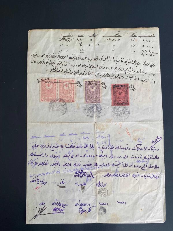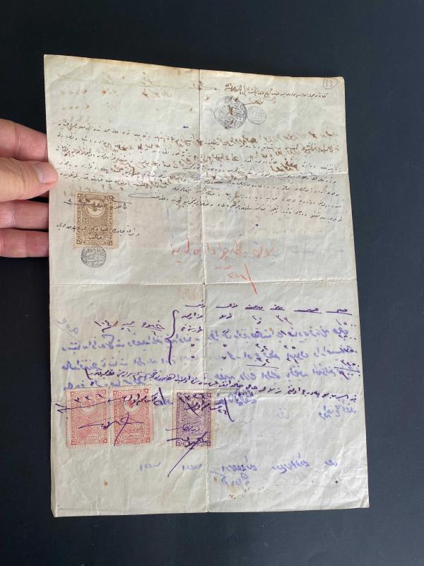 Padişah VI. Mehmed Vahdettin döneminde, Aralık 1918 tarihli Kırkağaç Mal Müdürlüğü’nden verilen resmi borç senedi. . Önlü arkalı olarak el yazısıyla hazırlanmış. Dönemin Osmanlı pulları, resmi mühürler ve borçlulara ait ıslak imzalar, mühürlerle kıymetle koleksiyonluk bir efemera. . Dönemin resmi mühürlerinin ve ıslak imzalarının bulunduğu, el yazısıyla doldurulmuş koleksiyonluk efemera.