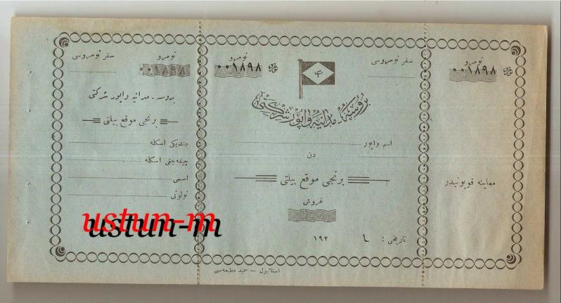 ** OSMANLICA BASKI BURSA-MUDANYA VAPUR BİLETİ ** Gayet temiz durumda,mavi renkte,Osmanlıca baskı vapur bileti...
