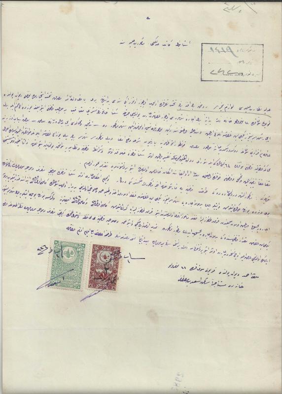 ** OSMANLICA ÇİFT FİSKAL PULLU ELYAZISIYLA NUMARALANDIRLMIŞ NOTER EVRAĞI ** A4 ebadında biraz daha büyükcene,gayet temiz durumda,iki adet fiskal pullu,orijinal noter evrağıdır...