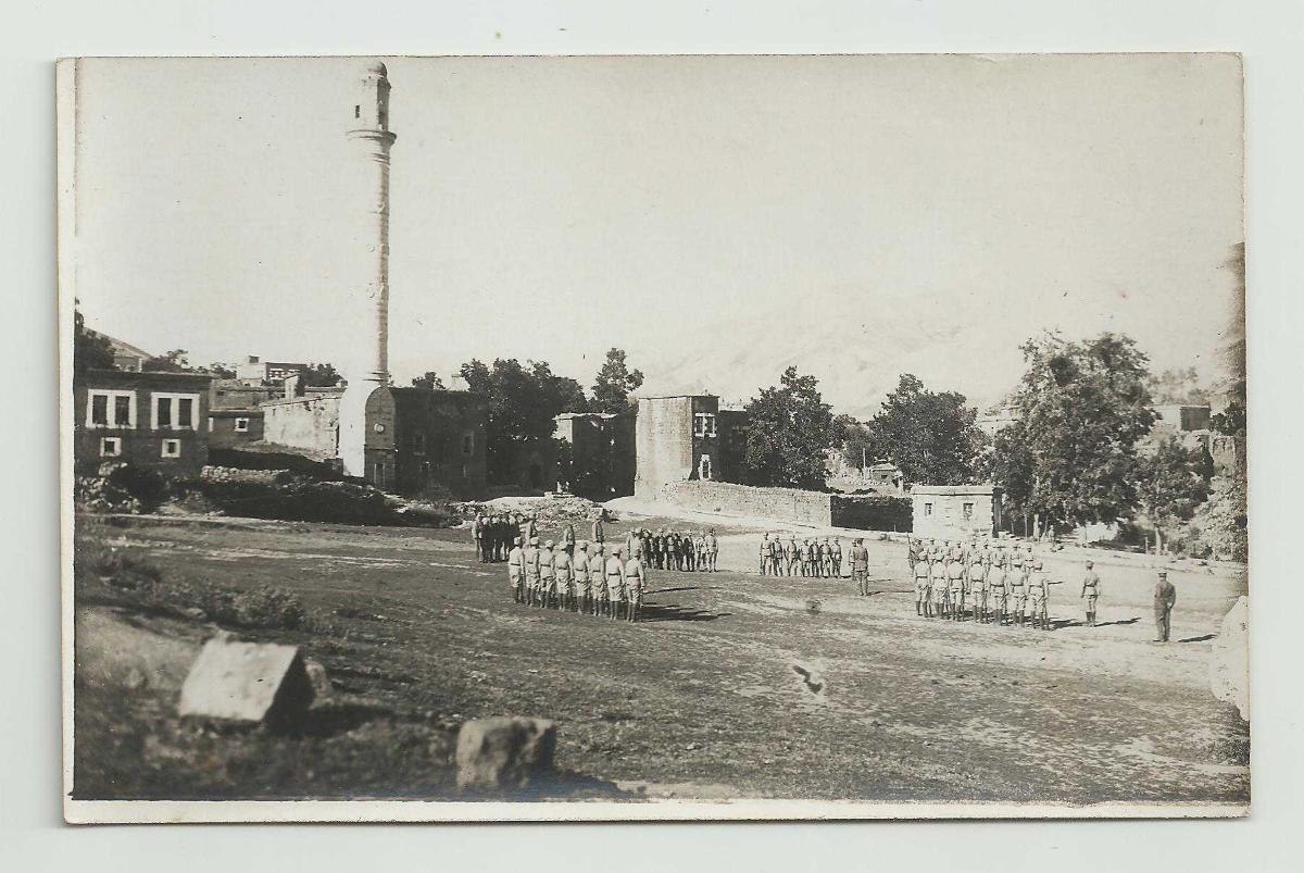 ** OSMANLICA DAMGALI BİTLİS ASKERİ BİRLİKLER FOTOKARTI ** 14 x 9 cm.ebadında,çil durumda,özel bir arşivden çıkma, Bitlis şehrinde askeri birlikleri gösterir nadir fotokartlardan...