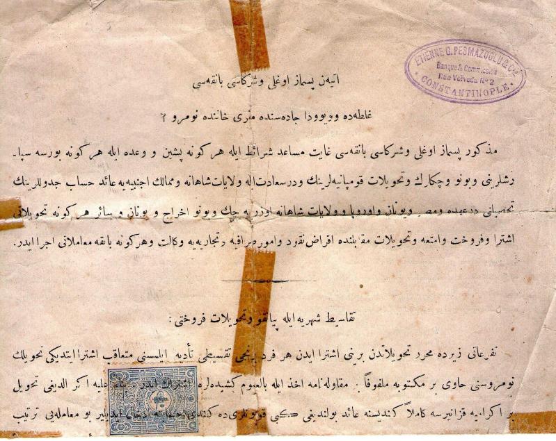 OSMANLICA "ERMENİCE"BELGE..ETİENNE G.PESMAZOĞLU CONSTANTİNOPLE, 3 yıl önce satışa sunulmuştur.