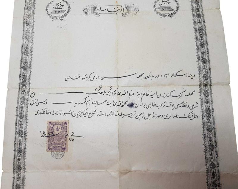 OSMANLICA EVLİLİK İZİNNAMESİ başlıklı ürün, Efemera, Müzik, Sinema > Belge ve Evraklar > Osmanlıca Belgeler kategorisi altında İkinci El olarak satılmaktadır.