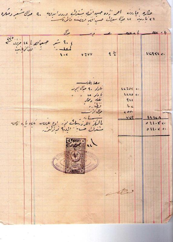 OSMANLICA Elie Hadji Thoma Hamouslou Smryne BELGESİ OSMANLI FİSCAL PULLU