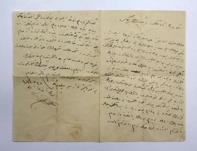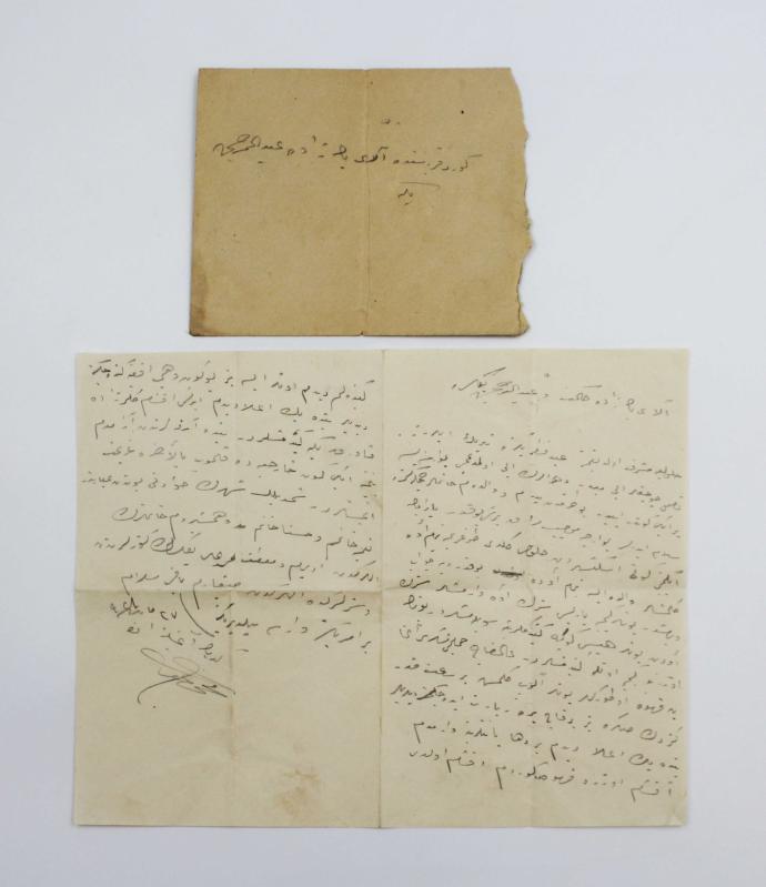 20x13 cm, Osmanlıca orijinal mektup zarfı ile birlikte. Ayrıca Eskişehir'den gelen Hulusi Bey'in ziyaretinden bahsedilmekte, 27 Mart 1928 tarihli