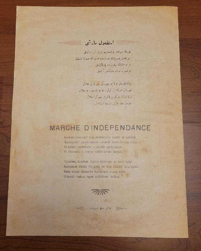 OSMANLICA İSTİKLAL MARŞI. ESKİ KOLEKSİYON BASKISIDIR. NEFİS GÖRSELLİ. başlıklı antika/koleksiyon objesi Asya menşe’lidir. Objenin ait olduğu dönem bilinmeketedir.