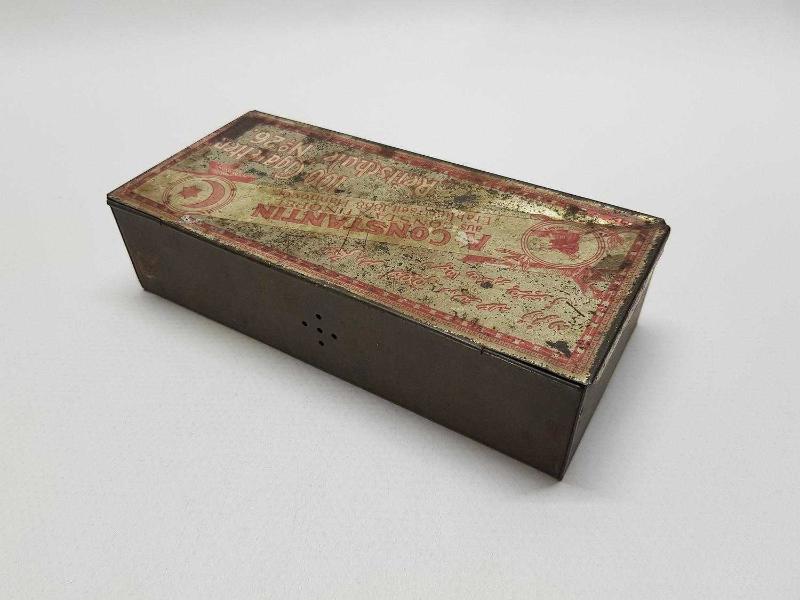 OSMANLICA YAZILI CONSTANTIN SİGARA KUTUSU başlıklı antika/koleksiyon objesi Osmanlı menşe’lidir. 1900-1919 arası dönemine aittir.
