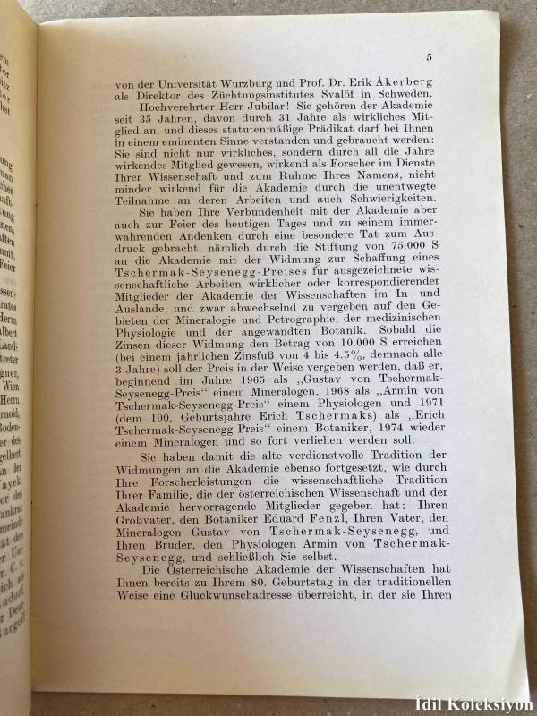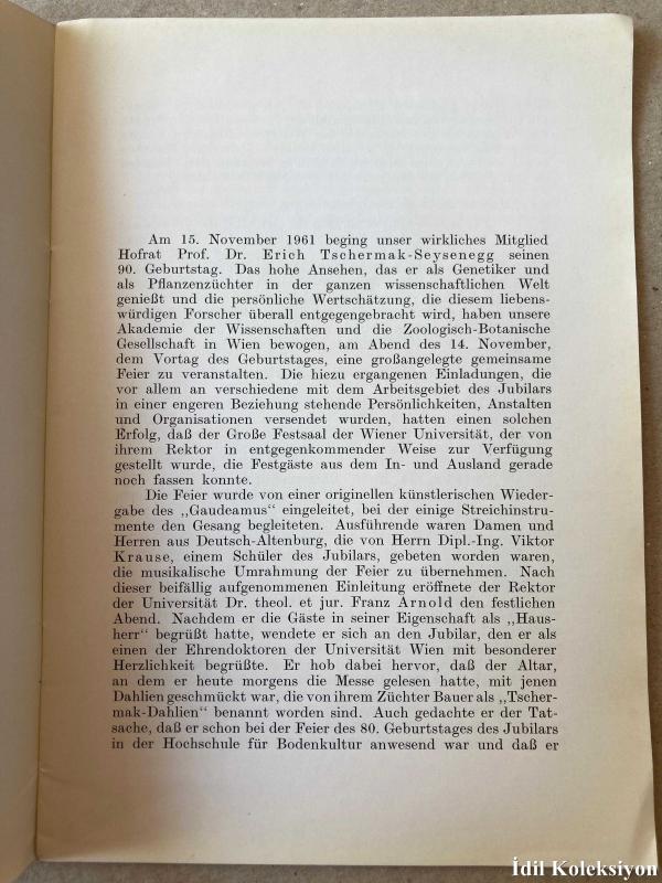 ÖSTERREİCHİSCHE AKADEMİE DER WİSSENSCHAFTEN - GEBURTSTAGSFEİER - DES WIRKLICHEN MİTGLİEDES HOFRAT PROF. DR. ERİCH TSCHERMAK SEYSENEGG - AM 15. NOVEMBER 1961 - Almanca Kitap (AVUSTURYA BİLİMLER AKADEMİSİ - DOĞUM GÜNÜ PARTİSİ)