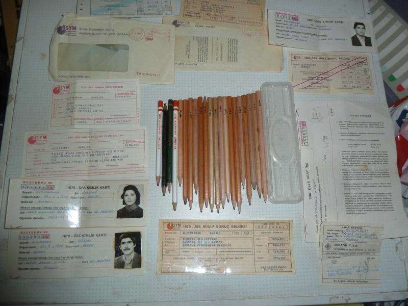 34 ADET ÖSYM SINAV KALEMİ 1 ADET KUM MARKA ALMAN MALI KALEMTRAŞ 2 ADET SİLGİ 11 ADET 1979-1984 YILLARI ARASI ÜNİVERSİTE SINAVI GİRİŞ KARTLARI VE SONUŞ BELGELERİ ADINIZA FATURADA KESİLECEKTİR ARAS KARGO İLE GÖNDERİLECEK