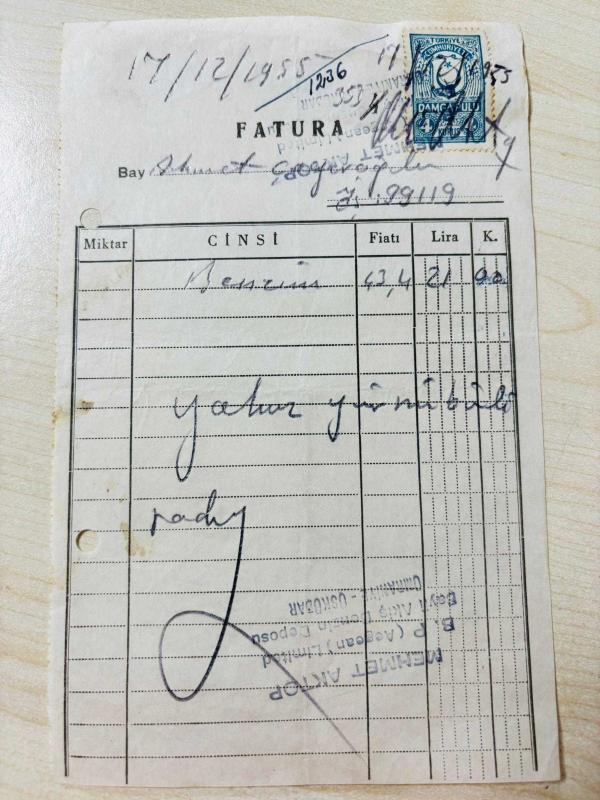 OTOMOBİL BENZİN FATURASI - 17 ARALIK 1955 - MEHMET AKTOP - B.P (AEGEAN) LİMİTED BAYİİ AKİŞ BENZİN DEPOSU - ÜMRANİYE, İSTANBUL - AHMET ÇAYIROĞLU - ISLAK İMZALI, KAŞELİ DAMGA PULU - 12 x 19 cm EBATLI ORİJİNAL FATURA, en son 1 yıl önce güncellenmiştir.