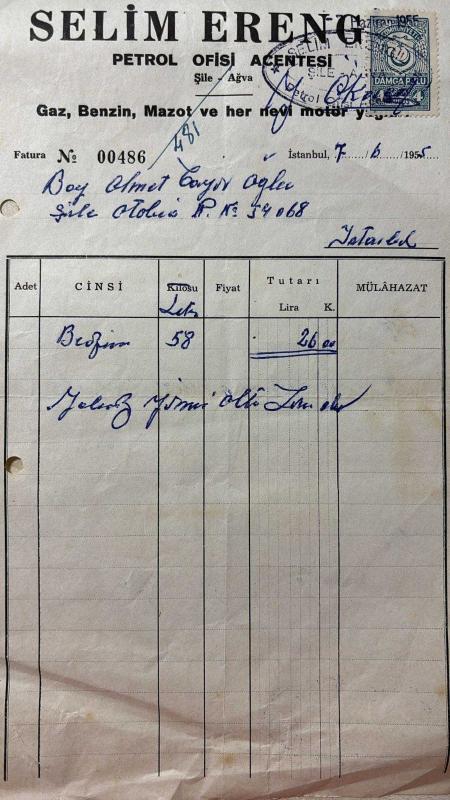 OTOMOBİL BENZİN FATURASI - 7 HAZİRAN 1955 - SELİM ERENGİL - PETROL OFİSİ ACENTESİ - ŞİLE, İSTANBUL - AHMET ÇAYIROĞLU - ISLAK İMZALI, KAŞELİ DAMGA PULU - 15 x 25 cm EBATLI ORİJİNAL FATURA, en son 1 yıl önce güncellenmiştir.