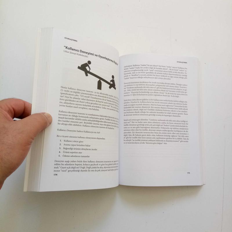 Bu kitapta oyunun tarihsel yolculuğuna eşlik edip, oyunun yaşamdaki yeri ve bugünün insanına etkileri üzerine düşünme olanağı bulacaksınız. Dijitalleşen dünyadaki yeni nesillerle tanışarak yapmak isteyip de yapamadıkları davranışlar konusunda oyunlaştırma ile nasıl motive olduklarını öğreneceksiniz. Oyunlaştırma ile iş hedeflerine ulaşmış, müşterileri ve çalışanları tarafında oyunun gücünü keşfetmiş ve süreçlerine taşımış olan firmaların öykülerine ortak olacaksınız. “Oyunlaştırma küresel alanda hakettiği yeri yeni bulmaya başlayan bir yaklaşım. Bu açıdan Türk okurlar için bu değerli kitaba sahip olmaları gerçekten büyük bir şans.” Kevin Werbach University of Pennsylvania “Oyunlaştırmanın sadece puan, rozet ve liderlik tablosundan ibaret olmadığından bahsedilerek, bu gibi standart yaklaşımlardan uzaklaşılması çok önemli. Oyunlaştırma psikolojik derinliği olan bir konudur ve elinizde tuttuğunuz bu kitap tüm bu derinliği barındırmaktadır.” Yu-kai Chou Founder of Octalysis Group “Altuğ Bey’in Eğitim Teknolojileri ve Niels Bey’in Oyunlaştırma konularındaki uzmanlıklarının bu kitapta birleşmesiyle tam bir başucu kitabı ortaya çıkmış. Tüm eğitim sektörü adına teşekkür ediyorum.“ Ahmet Hançer Enocta CEO “Oyunlaştırmanın bu kadar popülerleşmesinin arkasında klasik pazarlama yöntemleri devrinin kapanmasının ve yeni yöntemlere olan ihtiyacın yattığını düşünüyorum. Altuğ ve Niels’i bu referans kitaptan dolayı tebrik ediyorum.’’ Sertan Eratay Turkcell Dijital Kanallar Direktörü “Nesnelerin İnterneti trendiyle bilgisayar ve telefonlarımız dışında şehrimiz, arabamız, evimiz, buzdolabımız, televizyonumuz, klimamız, ısıtma sistemimiz, prizlerimiz, lambalarımız hatta çalar saatimiz de ölçülebilir birer oyuncuya dönüşecek. Yani oyunlaştırma oyunu daha yeni başlıyor.” Michael Wu Chief Scientist at Lithium Technologies • Oyun • Dijitalleşerek Değişen Dünya ve X, Y, Z, Alfa Jenerasyonu • Oyun Nedir? Oyun Düşüncesi, Oyun Tasarımı ve Oyun Teoremi • Oyun Tasarımı ve Oyun Düşüncesi Nedir? • Oyun Teoremi • Oyunlaştırma • Neden Oyunlaştırma? • Oyunlaştırmanın Psikolojik Temelleri • İçsel Motivasyon – Dışsal Motivasyon • Tarihte Klasik Oyun Öğelerinin Kullanılımı ve Örnekleri • Modern ve Dijital Oyunlaştırma Örnekleri • Oyunlaştırma Kitlesi ve Oyuncu Tipleri • Oyuncunun Yolculuğu • Player Persona Kartları (Oyuncu Kişilik Kartları) • Oyunlaştırmada Oyuncu Merkezli Tasarım • Oyunlaştırma Takım Çantası: Dinamikler, Mekanikler ve Bileşenler • Oyun Temelli Eğitimler • Dijital Eğitim Trendleri ve Gelecek