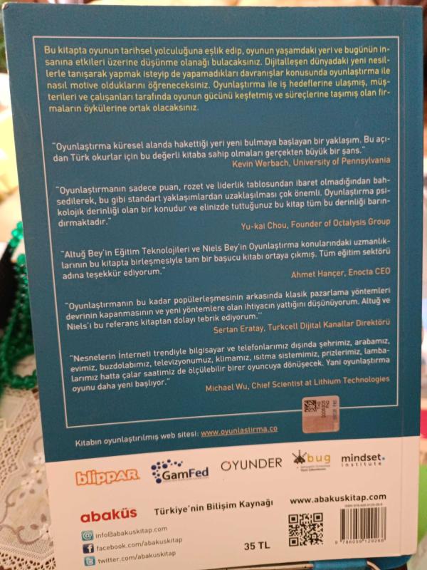 Bu kitapta oyunun tarihsel yolculuğuna eşlik edip, oyunun yaşamdaki yeri ve bugünün insanına etkileri üzerine düşünme olanağı bulacaksınız. Dijitalleşen dünyadaki yeni nesillerle tanışarak yapmak isteyip de yapamadıkları davranışlar konusunda oyunlaştırma ile nasıl motive olduklarını öğreneceksiniz. Oyunlaştırma ile iş hedeflerine ulaşmış, müşterileri ve çalışanları tarafında oyunun gücünü keşfetmiş ve süreçlerine taşımış olan firmaların öykülerine ortak olacaksınız. “Oyunlaştırma küresel alanda hakettiği yeri yeni bulmaya başlayan bir yaklaşım. Bu açıdan Türk okurlar için bu değerli kitaba sahip olmaları gerçekten büyük bir şans.” Kevin Werbach University of Pennsylvania “Oyunlaştırmanın sadece puan, rozet ve liderlik tablosundan ibaret olmadığından bahsedilerek, bu gibi standart yaklaşımlardan uzaklaşılması çok önemli. Oyunlaştırma psikolojik derinliği olan bir konudur ve elinizde tuttuğunuz bu kitap tüm bu derinliği barındırmaktadır.” Yu-kai Chou Founder of Octalysis Group “Altuğ Bey’in Eğitim Teknolojileri ve Niels Bey’in Oyunlaştırma konularındaki uzmanlıklarının bu kitapta birleşmesiyle tam bir başucu kitabı ortaya çıkmış. Tüm eğitim sektörü adına teşekkür ediyorum.“ Ahmet Hançer Enocta CEO “Oyunlaştırmanın bu kadar popülerleşmesinin arkasında klasik pazarlama yöntemleri devrinin kapanmasının ve yeni yöntemlere olan ihtiyacın yattığını düşünüyorum. Altuğ ve Niels’i bu referans kitaptan dolayı tebrik ediyorum.’’ Sertan Eratay Turkcell Dijital Kanallar Direktörü “Nesnelerin İnterneti trendiyle bilgisayar ve telefonlarımız dışında şehrimiz, arabamız, evimiz, buzdolabımız, televizyonumuz, klimamız, ısıtma sistemimiz, prizlerimiz, lambalarımız hatta çalar saatimiz de ölçülebilir birer oyuncuya dönüşecek. Yani oyunlaştırma oyunu daha yeni başlıyor.” Michael Wu Chief Scientist at Lithium Technologies • Oyun • Dijitalleşerek Değişen Dünya ve X, Y, Z, Alfa Jenerasyonu • Oyun Nedir? Oyun Düşüncesi, Oyun Tasarımı ve Oyun Teoremi • Oyun Tasarımı ve Oyun Düşüncesi Nedir? • Oyun Teoremi • Oyunlaştırma • Neden Oyunlaştırma? • Oyunlaştırmanın Psikolojik Temelleri • İçsel Motivasyon – Dışsal Motivasyon • Tarihte Klasik Oyun Öğelerinin Kullanılımı ve Örnekleri • Modern ve Dijital Oyunlaştırma Örnekleri • Oyunlaştırma Kitlesi ve Oyuncu Tipleri • Oyuncunun Yolculuğu • Player Persona Kartları (Oyuncu Kişilik Kartları) • Oyunlaştırmada Oyuncu Merkezli Tasarım • Oyunlaştırma Takım Çantası: Dinamikler, Mekanikler ve Bileşenler • Oyun Temelli Eğitimler • Dijital Eğitim Trendleri ve Gelecek