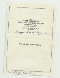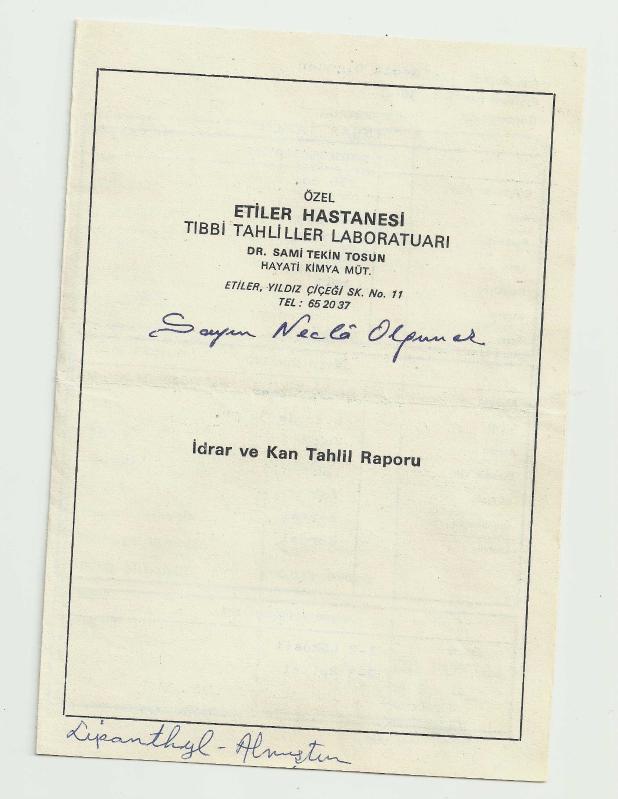 ** ÖZEL ETİLER HASTANESİ ** Kalın kağıda basılı,iki yaprak üç sayfası dolu,yapılan tahlillerin neticeleri bulunuyor...