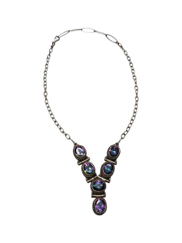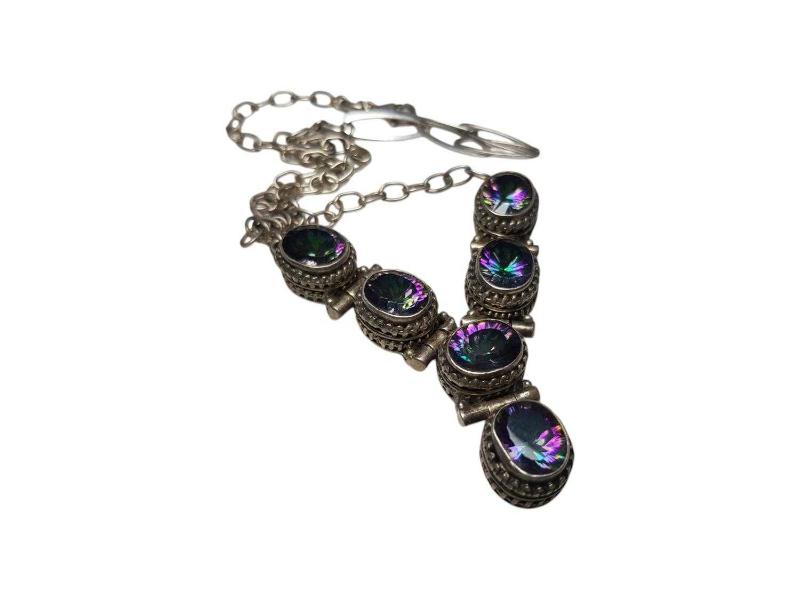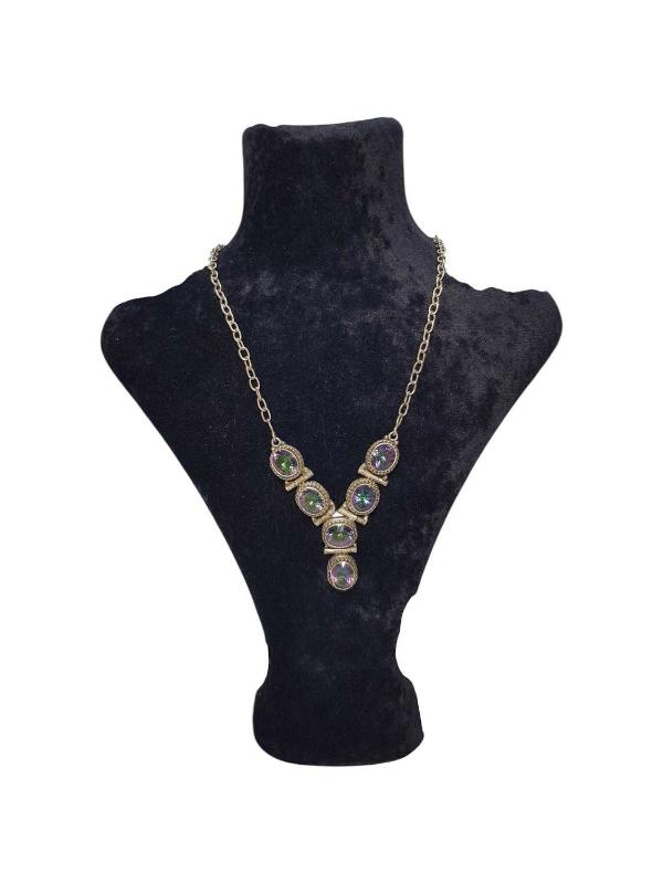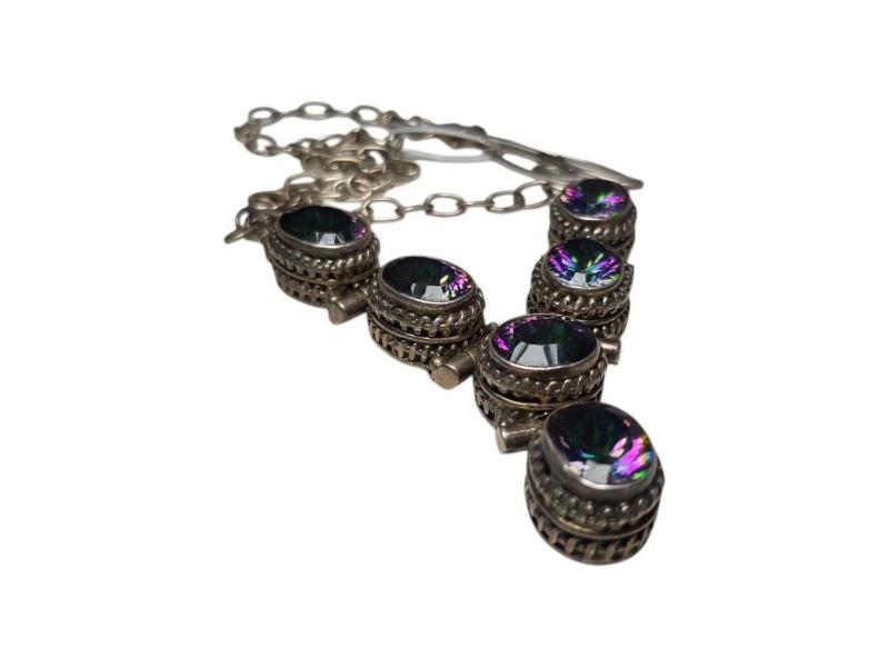 ÖZEL YAPIM BÜYÜK MOZANİT TAŞLARLA SÜSLÜ GÜMÜŞ GERDANLIK. UZUNLUK: 44 CM AĞIRLIK: 40 GRAM
