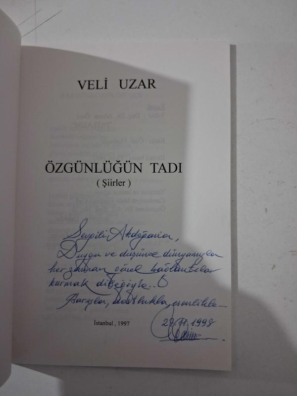 ÖZGÜNLÜĞÜN TADI ( İmzalı, İthaflı ), VELİ UZAR tarafından kaleme alınmıştır. Kitap 1997 yılında ÖZAL MATBAASI tarafından [İSTANBUL] yayınlanmıştır. 61 sayfadır. ÖZGÜNLÜĞÜN TADI ( İmzalı, İthaflı ) adlı eser Türkçe dilindedir.