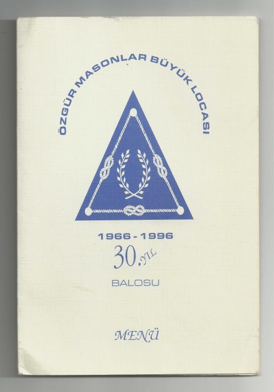 ** ÖZGÜR MASONLAR BÜYÜK LOCASI 30,.YIL BALOSU MENÜ ** 19.5 x 13.3 cm.boyutunda,iki yaprak kalın kartondan,gayet iyi kondüsyonda menüdür...