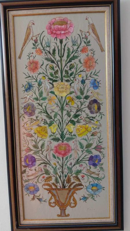 Ödemiş İpeği Üzerine El Boyama Kuşlu & Çiçekli Dikey Kompozisyon (110×55 cm), dün kitantik’te satışa sunulmuştur.
