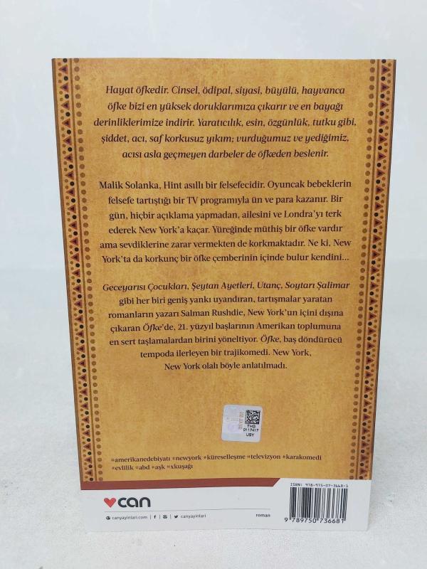 Öfke, Salman Rushdie tarafından kaleme alınmıştır. Kitap 2023 yılında Can Yayınları tarafından 9789750736681 ISBN kodu ile yayınlanmıştır. Bu baskının çevirisi Begüm Kovulmaz tarafından yapılmıştır. 341 sayfadır. Öfke adlı eser Türkçe dilindedir.