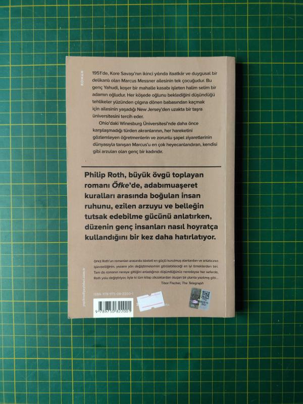 Öfke, Philip Roth tarafından kaleme alınmıştır. Kitap 2021 yılında Yapı Kredi Yayınları, YKY tarafından 9789750822001 ISBN kodu ile yayınlanmıştır. Bu baskının çevirisi Şeyda Öztürk tarafından yapılmıştır. 131 sayfadır. Öfke adlı eser Türkçe dilindedir.