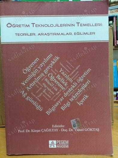 Öğretim Teknolojilerinin Temelleri Teoriler Araştırmalar Eğilimler, Kürşat Çağıltay Yüksel Göktaş tarafından kaleme alınmıştır. Kitap 2013 yılında Pegem akademi tarafından yayınlanmıştır. 722 sayfadır. Öğretim Teknolojilerinin Temelleri Teoriler Araştırmalar Eğilimler adlı eser Türkçe dilindedir.