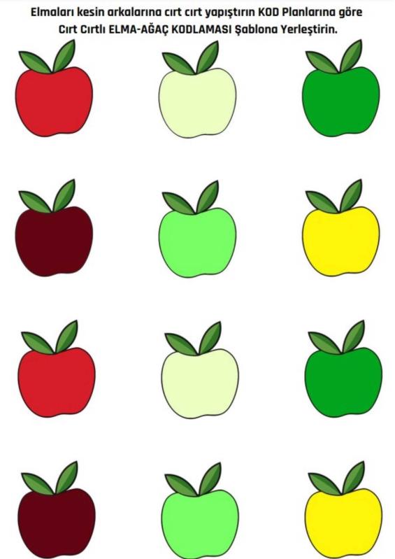 Okul Öncesi KODLAMA Etkinlikleri (Elma-Ağaç) Cırt Cırtlı Okul Öncesi Kodlama Etkinliği Cırt Cırtlı Okul Öncesi Kodlama Öğreten Aktivitedir. Dijital Rengarenktir. 120 gramajlı kağıda dijital baskı yapılmıştır. Kodlamada kullanılacak Elmalar cırt cırtlıdır. Türkiye’de İLK DEFA EĞLENCELİ ve CIRT CIRTLI YAPIŞTIRMA İLE kodlama yapmayı öğreneceklerdir. Çocukların elinden düşürmeyeceği bir kodlama aktivitedir. Tek aktivitedir. Sayfalar kolay kullanım için spiralli olarak hazırlanmıştır. Kesilecek elmalar laminasyonla kaplıdır. Cırt cırtlar için kesilecek elmaların arkasına yapıştıracağınızdan birkaç tane fazla olacak şekilde gönderilmektedir. Aktivitenin yanında cırtcırt hediyeler ve makas hediye edilmektedir. Elma-Ağaç ANA Şablona Cırt Cırtlar eklidir. Okul Öncesi KODLAMA Etkinlikleri (Elma-Ağaç) İçeriği: Laminasyonlu ŞABLONLAR Cırt Cırtlar hediye edilmektedir. (10 Cırt Cırt Hediye) Makas hediye edilmektedir. Cilt Özellikleri : Sarff 450Mic. A4 Şeffaf Kapak (Sert Kapak) Şeffaf kapağın altında kitabın renkli kapağı yer almaktadır. Sert Kapak (Dış Kapak) Özellikleri: 450 Micron Buzlu Şeffaf Kapak (Sert Kapak) Kraft Cilt (Arka Kapak) Özellikleri: Kraft Kağıt ham maddesi odun selülozudür. Suya dayanıklıdır. Kopma mukavemetlidir. Neme dayanıklıdır. Helezon Özellikleri: Sarff 14 mm Pvc Helezon Spiral Şeffaf (4:1) flament çapı 1,8 dır.