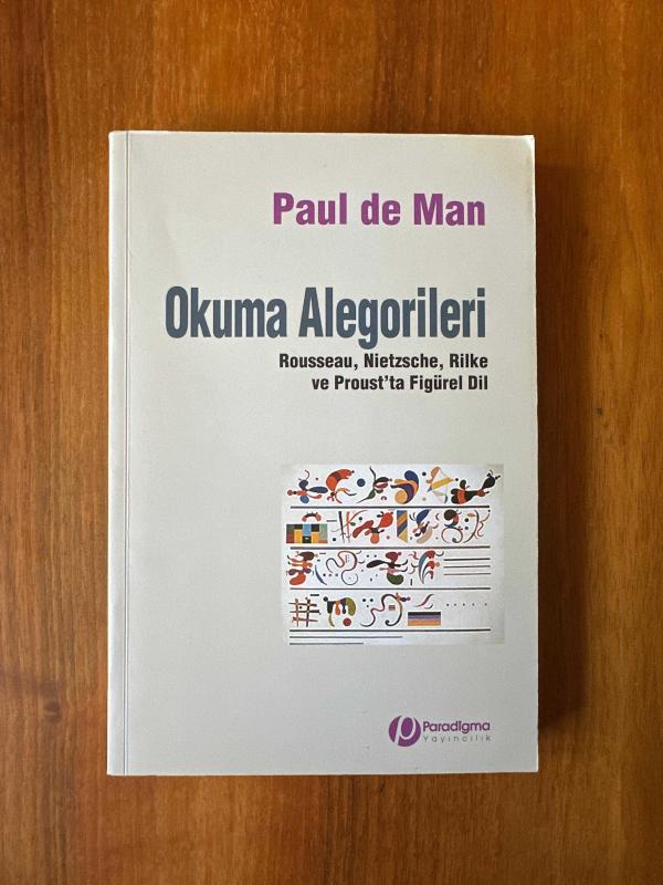 Okuma Alegorileri : Rousseau Nietzsche Rilke Ve Proust'ta Figürel Dil, Paul de Man tarafından kaleme alınmıştır. Kitap 2008 yılında Paradigma Yayınları tarafından [İstanbul] 9789757819509 ISBN kodu ile yayınlanmıştır. Bu baskının çevirisi Mustafa Zeki Çıraklı tarafından yapılmıştır. 356 sayfadır. Okuma Alegorileri : Rousseau Nietzsche Rilke Ve Proust'ta Figürel Dil adlı eser Türkçe dilindedir.