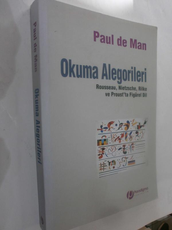 Okuma Alegorileri; Rousseau, Nietzsche, Rilke ve Proust'ta Figürel Dil, Paul De Man tarafından kaleme alınmıştır. Kitap 2008 yılında Paradigma Yayıncılık tarafından [İstanbul] 9789757819509 ISBN kodu ile yayınlanmıştır. Satışta olan kitap, yayınevinin 1. baskısıdır. Bu baskının çevirisi Mustafa Zeki Çınarlı tarafından yapılmıştır. 356 sayfadır. Okuma Alegorileri; Rousseau, Nietzsche, Rilke ve Proust'ta Figürel Dil adlı eser Türkçe dilindedir.