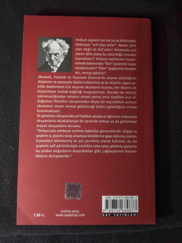 Verbum sapienti sat est ya da dilimizdeki ifadesiyle “arif olan anlar”. Neden âlim olan değil de ârif olan? Anlamada arif olanın âlim olana bu üstünlüğü nereden kaynaklanır? Anlama melekesini kazandırmak bakımından “ilim” (scientia) insanı nerede bırakır? “İrfan” (sapientia) nereden alır, nereye götürür? Okumak, Yazmak ve Yaşamak Üzerine’de okuma etkinliğinin düşünme ve yazmayla ilişkisi irdelenmiş ve bu ikisinin uygun şekilde beslenmesi için seçerek okumanın lüzumu, her ikisinin de düşünmeye mutlak bağlılığı vurgulanmıştı. Burada ise sözünü sakınmazlığından rahatsız olmak yerine artık özellikle arar olduğumuz filozofun zaviyesinden böyle bir seçicilikten yoksun okumanın insanı nereye götüreceği bütün çıplaklığıyla ortaya konulmaktadır. Ve günümüz dünyasında sırf hakikat aşkıyla ve öğrenme tutkusuyla okuyanlarla okuduklarıyla bir yerlerde olmayı ya da görünmeyi arayan okuyanların durumu: “Dolayısıyla edebiyat tarihine bakanlar göreceklerdir, bilgiyi ve şeylerin iç yüzünü sezip anlamayı kendilerine gaye edinmiş olanlar, kıymetleri bilinmemiş ve yüz çevrilmiş olarak kalırken, bu tür şeylerin safi görüntüsüyle ortalıkta caka satıp gösteriş yapanlar bu yoldan boğazlarını doyurdukları gibi, çağdaşlarının hayranlıklarını da kazanırlar.”