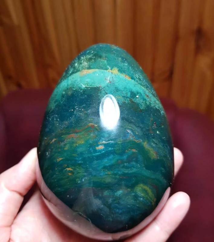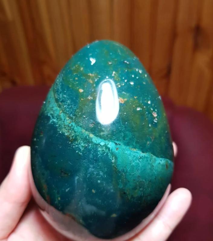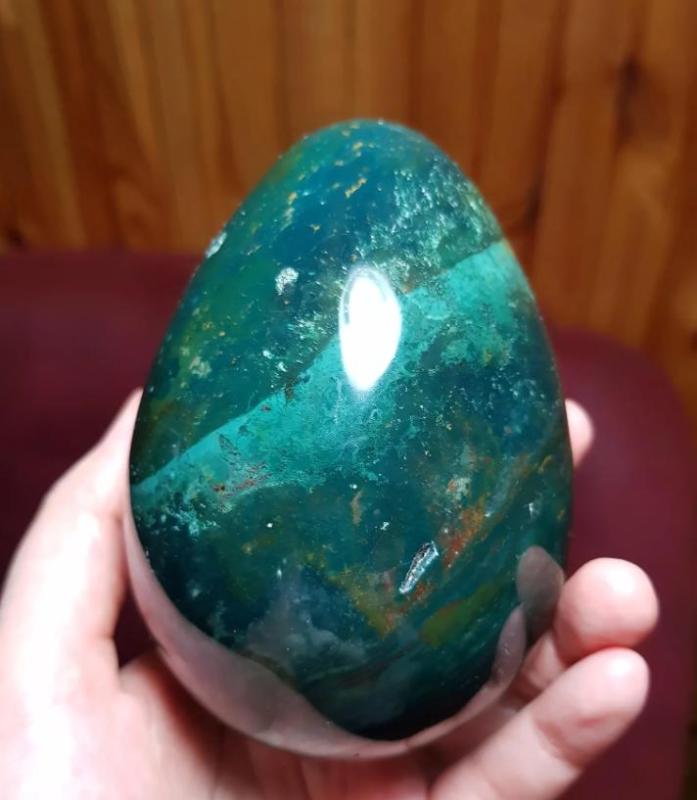 Okyanus Jasper Yumurtası: Derin Yeşil Akik ve Soluk Mavi Sakinleştirici Taş - Ağırlık: 814g - Benzersiz Koleksiyonluk Nadir Parça Kütle, dün kitantik’te satışa sunulmuştur.