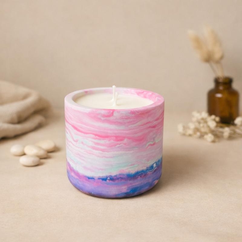 Gallery ND Candle Okyanusta Gün Batımı soya mumu. Üst nota: okaliptüs, lavanta Orta nota: amber Alt nota: misk Doğal soya mumu ile ferah, deniz esintili bir atmosfer yaratın. Dekoratif ve huzur dolu! Ürün el yapımı beton mumlukta olup verniklidir. Doğal yağlar ile kokulandırılmıştır. Mumluk içerisinde 170 gr soya mumu bulunmaktadır. Uzun yanış süresi sağlamaktadır.