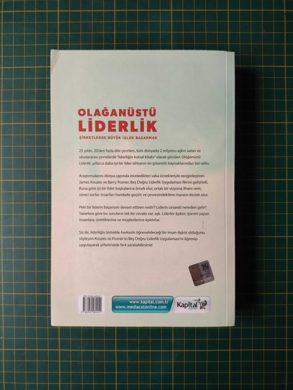Olağanüstü Liderlik : Şirketlerde Büyük İşler Başarmak, James Kouzes, Barry Posner tarafından kaleme alınmıştır. Kitap 2014 yılında Mediacat Yayıncılık tarafından 9786054584451 ISBN kodu ile yayınlanmıştır. Bu baskının çevirisi Mirel Benveniste tarafından yapılmıştır. 370 sayfadır. Olağanüstü Liderlik : Şirketlerde Büyük İşler Başarmak adlı eser Türkçe dilindedir.
