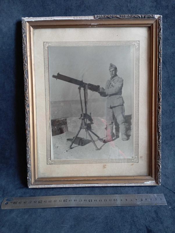 Makineli tüfek başındaki asker Çerçeve yıllar içinde biraz yıpranmış resimlerdeki haliyle KOLEKSiYONLUK Dekorluk 37x28 cm