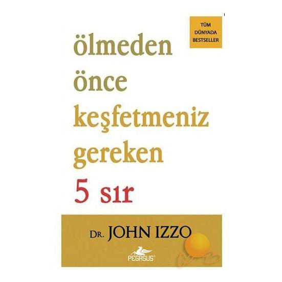 Kitap hakkında; Kitap iyi dsurumdadır. Kitabın ön kapağı ve ilk 4 sayfasının sağ alt köşesinde yırtıklar mevcuttur. Yayıncı Pegasus ( 03 / 2008 ) ISBN 9786055943080 | Türkçe | 184 Sayfa | Türler Kişisel Gelişim "Eğer bu yıl sadece bir kitap okuyacaksanız, lütfen bu kitap Ölmeden Önce Keşfetmeniz Gereken 5 Sır kitabı olsun. Dr. Izzo daha mutlu ve anlamlı bir hayatı elde etmek için gerekli olan temel noktaların sentezini yaparak bize tarihi bir hizmette bulunmaktadır. Bu olağanüstü bilgece bir eserdir." Larry C. Spears "Hayatınızın sonunda "Keşke şimdi bildiğimi daha önce bilmiş olsaydım" demek yerine, şimdiden de bu bilgiye ulaşabilirsiniz. Bu kitap gerçekten önemli bakış açılarına sahip insanların inanılmaz bilgeliklerini toplayan bir kitap." Marshall Goldsmith