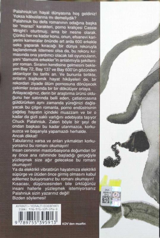 📘 Kitap Hakkında: “Ölüm Pornosu”, Chuck Palahniuk’un şöhret, tüketim kültürü ve insan bedeninin metalaşması üzerine kurduğu provokatif romanıdır. Eser, uç bir olay örgüsü üzerinden modern toplumun sınır tanımaz merakını ve ahlaki çöküşünü sorgular. 💡 Arka Kapak Metninden Hareketle: Tek bir gün ve tek bir mekânda geçen hikâye, medyanın ve kalabalıkların sansasyon arzusunu gözler önüne serer. Palahniuk, kısa bölümler ve çoklu bakış açılarıyla ilerleyen anlatısında, şöhretin ardındaki boşluğu ve izlenme tutkusunun insanları nasıl dönüştürdüğünü çarpıcı bir dille aktarır. “Ölüm Pornosu”, rahatsız edici olduğu kadar düşündürücü, sınırları zorlayan bir roman deneyimi sunar. 👤 Kimler Okumalı: • Chuck Palahniuk’un sert ve provokatif üslubunu sevenler • Medya, şöhret ve tüketim kültürü eleştirilerine ilgi duyanlar • Alışılmış anlatıların dışında, sarsıcı romanlar arayan okurlar