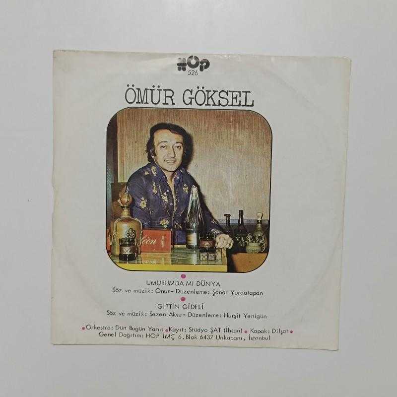şarkıcı/grup-Ömür GÖKSEL şarkılar -Umrumda mı dünya - gittin gideli tür -POP baskı/press -1977 plak -8/10 kapak -7,5+/10 MPN no -HOP-526 bilgi -