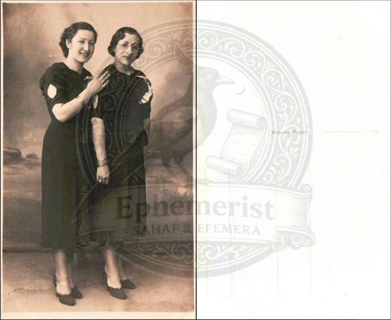 Omuzları pencere detaylı koyu elbiseleri, takıları ve gözlükleriyle stüdyoda poz veren iki hanım. (Orijinal Fotoğraf, S/B, 1940'lar, 9x14 cm.) başlıklı ürün, Efemera, Müzik, Sinema > Fotoğraflar > Diğer kategorisi altında İkinci El olarak satılmaktadır.